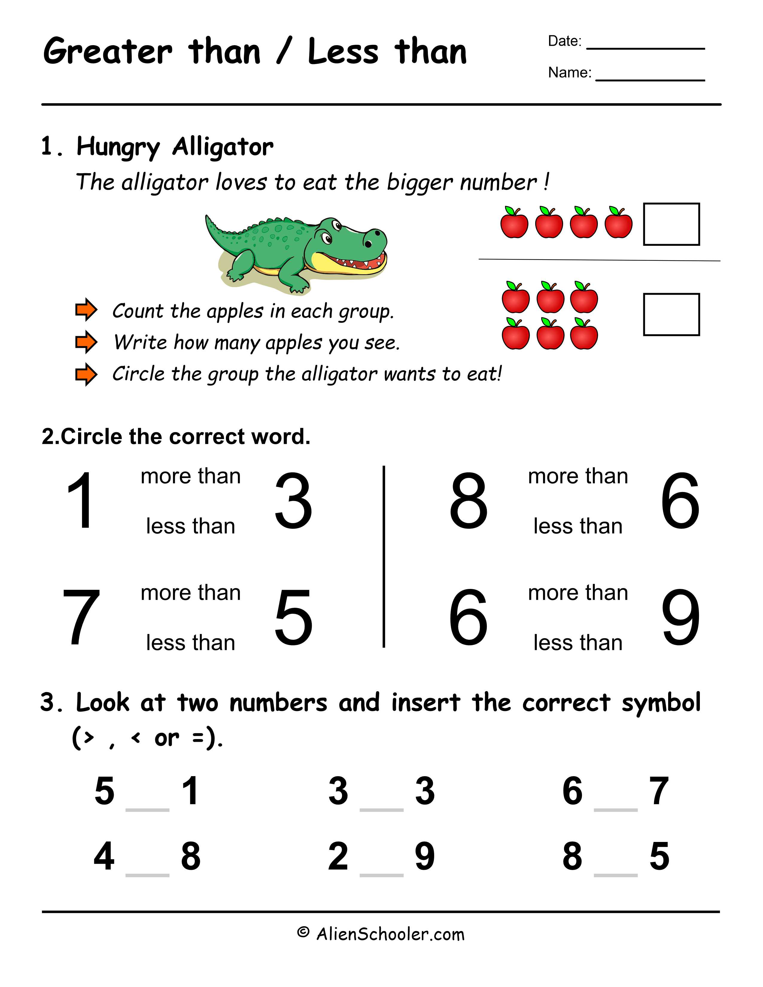 This free printable resource from the topic Greater Than and Less Than Activities for Kindergarten.