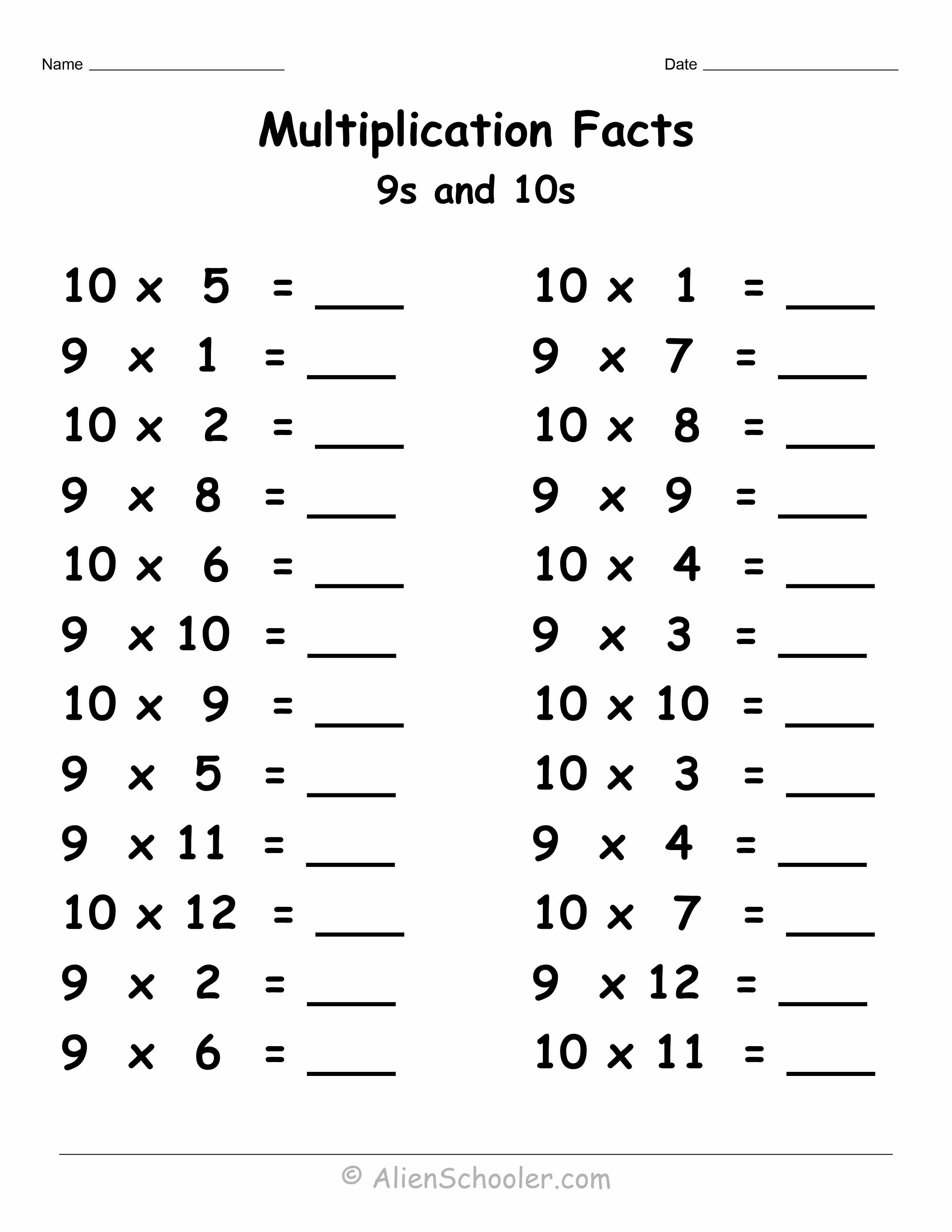 Unlock two powerful patterns! This worksheet focuses on the 9 and 10 times tables — facts rich in mathematical patterns that help students move beyond memorization to conceptual understanding.